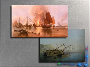 | En art plastique, les Anglo-Saxons ont conservé jusqu’à aujourd’hui une longue tradition d’Hyper-réalisme immersif au travers des peintures militaires, et en particulier de la peinture marine. Le style, les maniérismes d’auteurs ont tendance à s’y effacer, derrière un soucis de figuration réaliste, qui, bien que proche de la photographie, n’en est pas moins chargé d’une dimension émotionnelle spécifique à la peinture et que le photographe aura beaucoup de mal à capter. http://www.asaa-avart.org/ http://www.military-art.com/ |